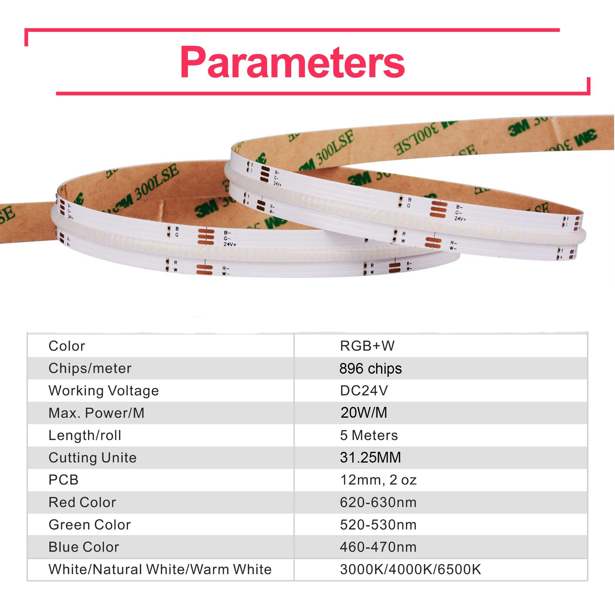 RGBW 896leds COB LED Tape 24VDC dotless CE ERP